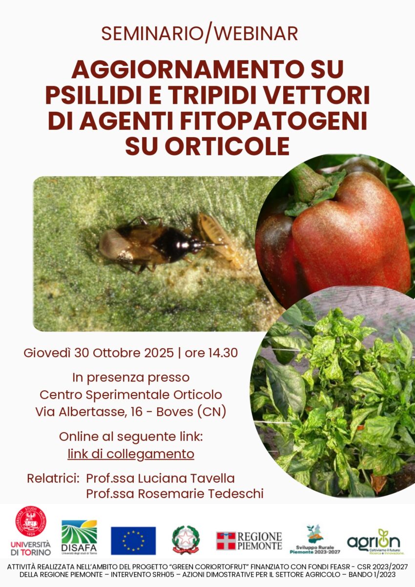 Giovedì 30 Ottobre 2025, alle ore 14:30 si terrà il seminario/webinar dal titolo “Nuove acquisizioni su biologia e gestione dell’afide lanigero del melo” presso il centro sperimentale orticolo di Fondazione Agrion in Via Albertasse, 16 – Boves (CN).